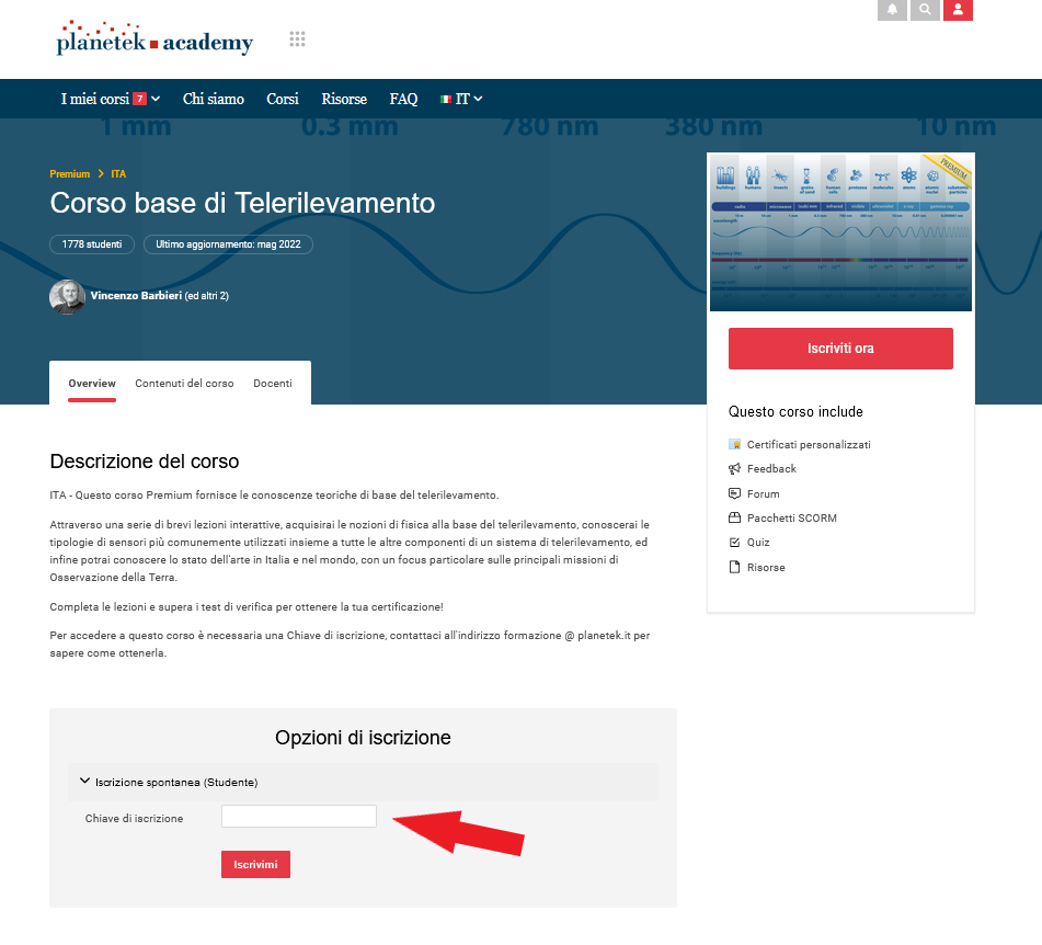 Se non hai la tua chiave di iscrizione contattaci all'indirizzo formazione @ planetek.it (rimuovere gli spazi).Saremo felici di aituarti!